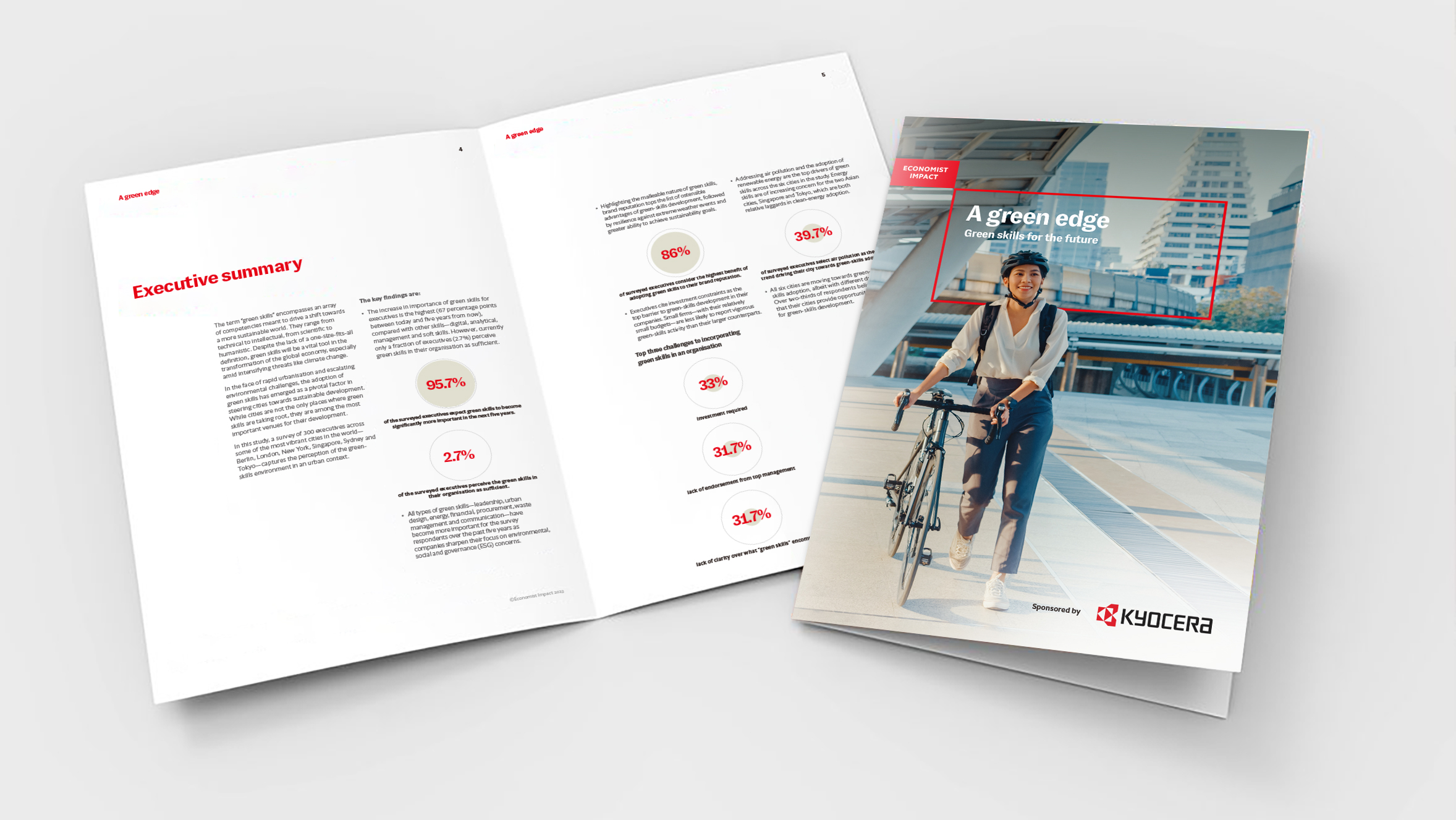 Kyocera Document Solutions Inc. (President: Hironori Ando, hereinafter: Kyocera) is pleased to announce the launch of a new global report, A Green Edge by Economist Impact, sponsored by Kyocera Document Solutions. This research programme explores the drivers behind green-skills adoption as well as analyzes businesses’ readiness and efforts to adopt green skills*1.