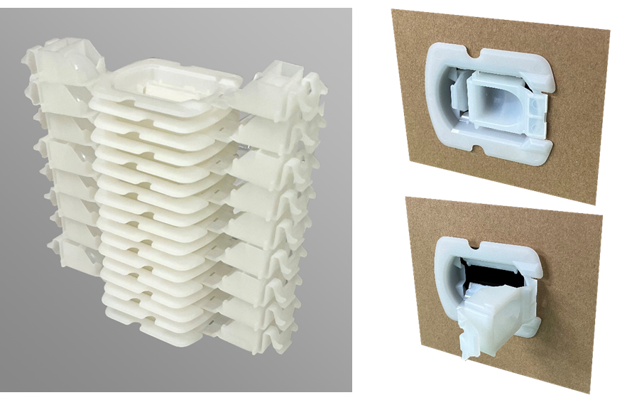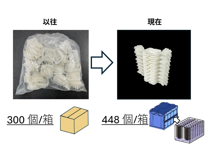 新設計的接合組件能夠巧妙堆疊,可以將更多數量的接合組件放入運輸空間,減少不必要的空間浪費,進而提升運輸效率。這也進一步減少了運輸過程中二氧化碳的排放量。