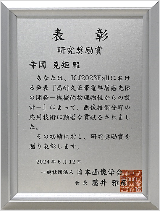 日本画像学会より「2023年度研究奨励賞」を受賞
