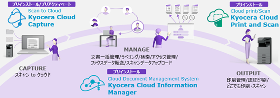 - ※1Kyocera Cloud information manager/ Share Point Online / Google Drive/ OneDrive に対応しています。各クラウドとは、別途契約が必要です。