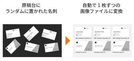 複数枚の原稿(最大16枚)を原稿台(ガラス面)に並べて一度にスキャンすることができます。領収書や名刺などの小さな原稿をまとめてデータ化することができ、作業効率が上がります。