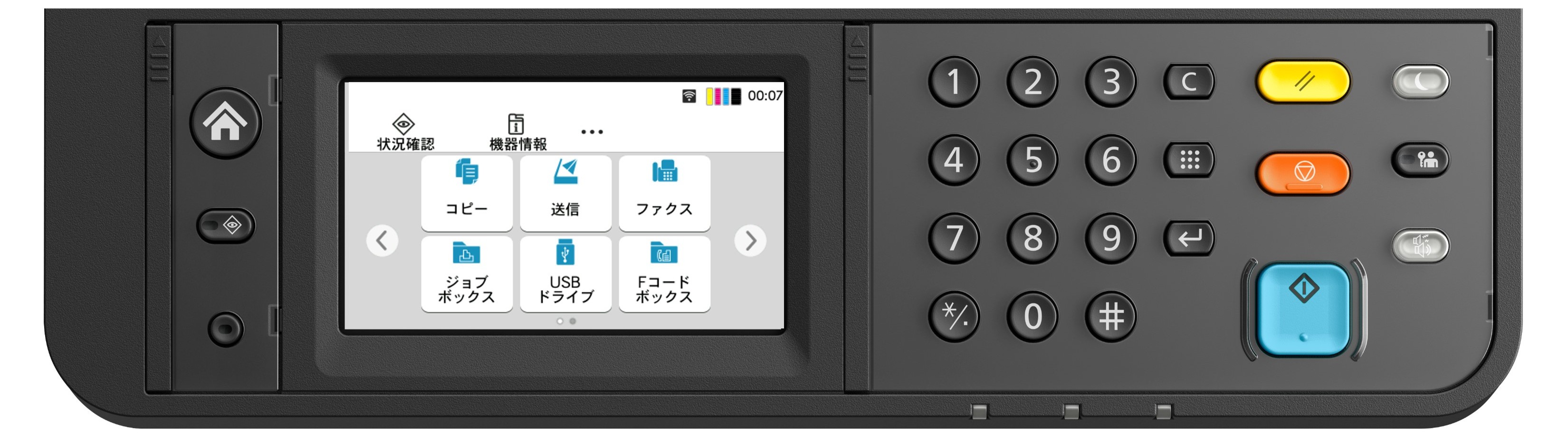 複合機モデルの操作パネルは、当社A3複合機と同様に使用する色数を少なくし、視認性を高くしました。アイコンやグラフィックをシンプルにすることで、重要な情報を直感的に操作できるようにしています。