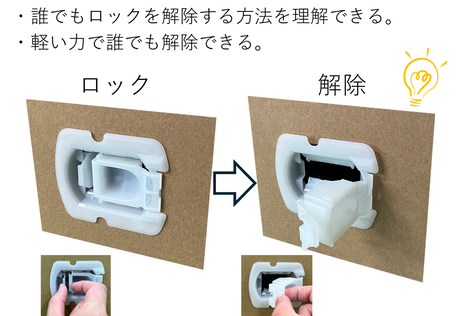① 誰もが取り外し方を理解できて、取り外しに必要な力を削減